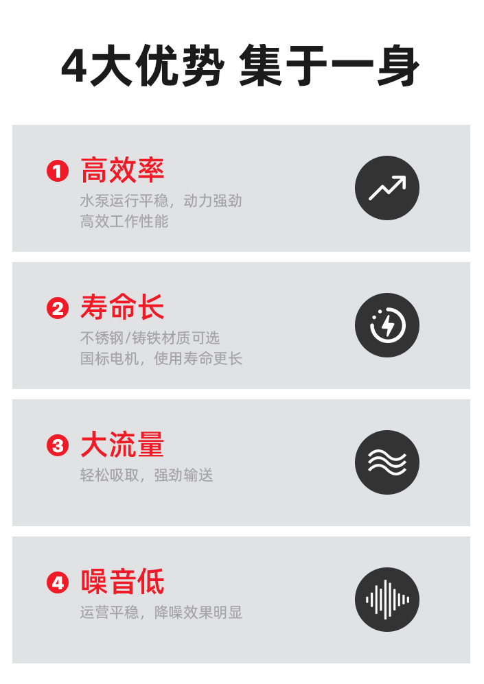 結構緊湊、外形美觀、性能穩定、自吸性能好